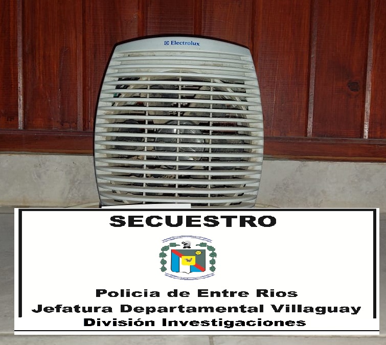 Personal policial de la División Investigaciones secuestró, en la tarde de este domingo 23 de mayo, un caloventor marca ElectroLux que guarda relación con una investigación en curso y que fuera caratulada “Hurto”.