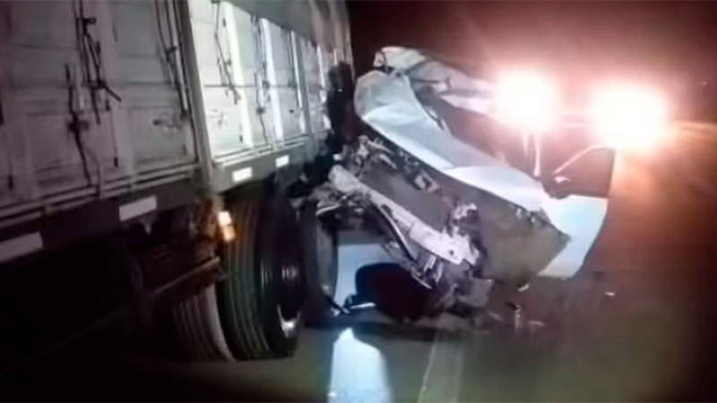 Fue en el kilómetro 97 donde el vehículo Honda, que era conducido por una mujer de 42 años e iba acompañada por una niña de 8 años y un niño de 4 años, impactó con el acoplado del camión, quedando enganchado en la parte trasera del mismo.