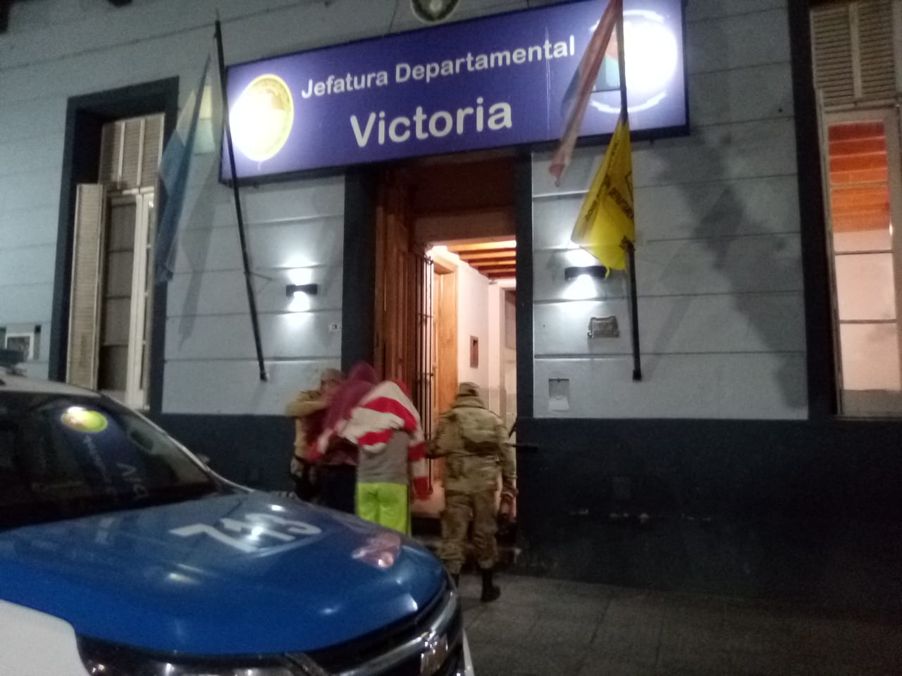 Ayer, En horas De La Tarde despues de un llamado advirtiendo de personas estarian en actitud sospechosa Con armas En el viaducto Victoria Rosario, altura. Km 35, con movil policial y civil lograron interceptar un automvil cuando Ya Habian cargado Parte De Un vacuno carneado y depostado a la vera de la Ruta. El conductor y otro individuo mayor de edad fueron aprehendidos en flagrancia, el hecho se cometió en el Km. 35 aprox. (intersección arroyo la camiseta) el propietario del animal refirio, no es la primera vez que Le Carnean de esta forma, el bovino tenia Un diaparo en la Cabeza y despostado, ubicado al costado de La Ruta, presumiendo que los Reatos Carnicos Serian transportados a La Ciudad De Rosario donde Actualmente Viven los dos involucrados de Nacionalidad Paraguaya quedaron Detencidos y trasladados hasta la. Jefatura. Dptal Victoria donde quedaron alojados. Mientras. Tanto debido a que El procemiento se Concreto de Noche se presume faltaron localizar uno o Dos complicea mas que se estima se Ocultaron en las inmediaciones. El auto Fue Aecuestrado y todavia Se Espera La Orden para efectuar requiza