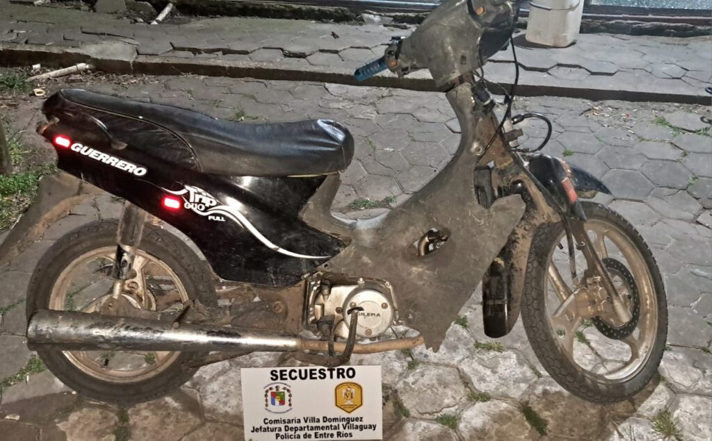 Personal Policial con prestación de Servicios en Comisaria Villa Domínguez, realizando Operativo de Control de Vehículos e Identificación de Personas, en camino vecinal rural Ex Ruta Nº 12, proceden a la identificación de una persona de sexo masculino, quien se conduce en un motovehículo, ante la consulta al Sistema de Control de Dominios, resulta que sobre una de las partes de este rodado pesa una solicitud de secuestro.