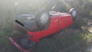 Al arribar al lugar se encuentran con un automovil Volskwagen modelo Gol y su conductor un hombre joven de 20 años de edad quien manifestó que había perdido el control del rodado lo que produjo el despiste y posterior vuelco del vehiculo.