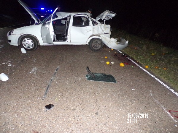 Por razones que se tratan de establecer el conductor de un vehículo Chevrolet Corsa, que circulaba en sentido Norte-Sur, pierde el control del rodado volcando el mismo sobre la cinta asfáltica. En el rodado se conducían cuatro personas mayores de edad, todos oriundos de la Provincia de Buenos Aires. El conductor, un hombre de 65 años, fue trasladado en ambulancia hasta el hospital de Bovril donde fue examinado por el médico de policía, informando que presentaba lesiones de carácter leves; los acompañantes, un hombre de 62 años y una mujer de 57, fueron trasladados hacia el hospital de la ciudad de Federal, donde se tomo conocimiento que el masculino presentaba lesiones de carácter graves por sufrir un corte profundo en el cuero cabelludo, en cuanto la mujer lesiones de carácter leves. El cuarto ocupante, Núñez Pedro Amadeo de 56 años de edad, falleció en el lugar tras ser despedido del vehículo.