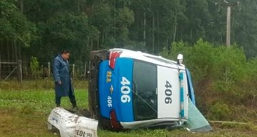 Tres policías hospitalizados tras volcar patrullero cuando iban por la Ruta 14