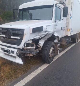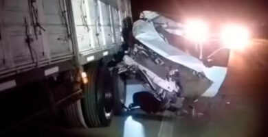 Una camioneta chocó un camión y quedó enganchada al acoplado