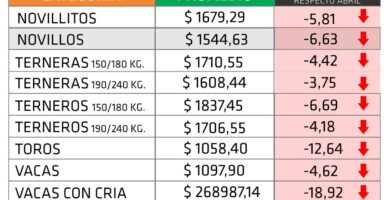 LA HACIENDA EN PIE TUVO VALORES EN RETROCESO EN TODAS LAS CATEGORÍAS DURANTE MAYO