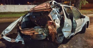 Rescataron a ocupantes de un auto que despistó en el agua y terminó chocando contra un árbol