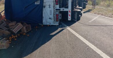 SAN SALVADOR: Vuelco de un acoplado con cítricos