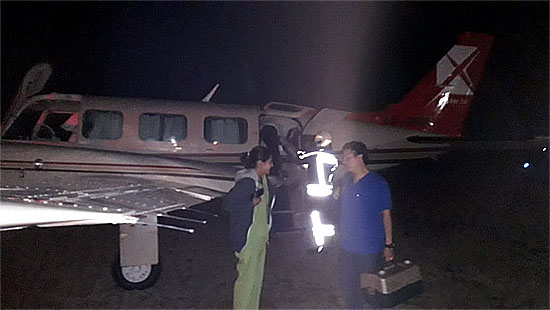 Con la participación de personal del Aeródromo de Concepción del Uruguay y Bomberos Voluntarios, se coordinó la llega del avión y el equipo de médicos, que tras su arrobo alrededor de las 20 horas, fueron acompañados hasta el nosocomio.