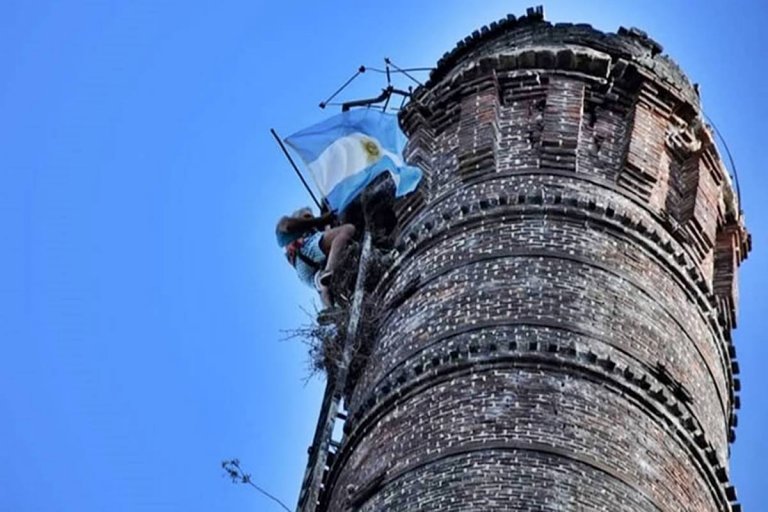 «Aquel día tenía una bandera de mi señora, del Mundial 86‘ y Dios me permitió hacer esta hazaña», contó. Vale agregar que la chimenea tiene 60 metros y – según explicó el vecino – «está abandonada desde los 80; así que hace 42 años que no tiene prácticamente mantenimiento».