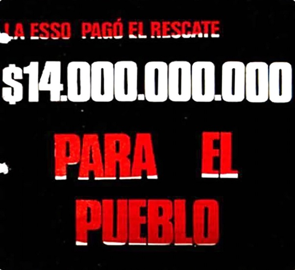 -No, los hacíamos todos los de la Junta: el ELN (Ejército de Liberación Nacional, de Bolivia), que no ponía gente, pero le dábamos guita; el MIR (Movimiento de Izquierda Revolucionaria, de Chile), que no operaba en Argentina, pero le dábamos guita también, el PRT y el MLN. Con Víctor Samuelson (3 de diciembre de 1973) le sacamos a la Esso 15.600.000 dólares. Cinco millones con el secuestro de la empresa suiza Swissair. Firmaba la Junta. Se mando plata a Chile para el MIR, se mandó al ELN, nos quedamos nosotros, y el toco grande se lo quedó el PRT-ERP.