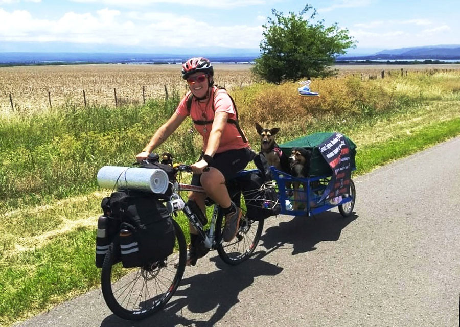 Una joven y sus dos perros. Una bicicleta, un carro, 145 kilos de carga y el deseo de una vida diferente.