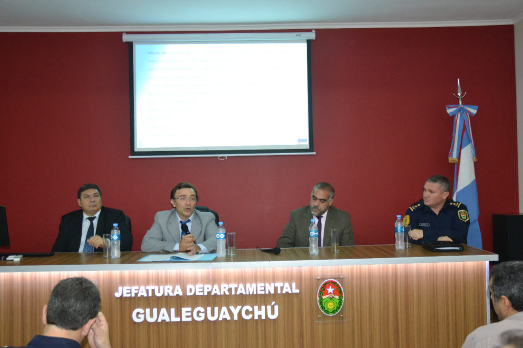 La reunión, tuvo lugar en la Jefatura Departamental Gualeguaychú, en horas de la mañana, con la presencia de los Jueces de Garantías Dres. Mario Figueroa y Guillermo Biré, el Coordinador de Fiscales Dr. Lisandro Beherán, junto al Jefe Departamental Comisario Mayor Carlos Pérez y el Sub Jefe Comisario Inspector Hormachea Cristian.