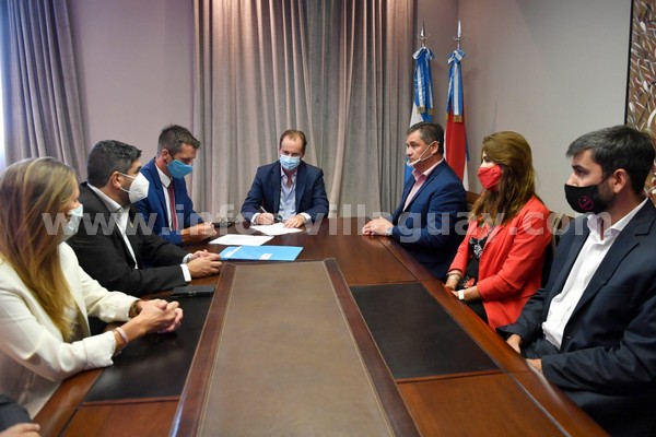 Se firmó convenio que autoriza  el llamado a Licitación de la obra de «Ampliación del Sistema de Desagües Cloacales» para  Villaguay. La intendente Claudia Monjo junto al Gobernador Gustavo Bordet, el Senador Adrián Fuertes, el Diputado Juan Cosso  y el Presidente del ENOHSA Enrique Cresto,  firmó  el convenio que autoriza el llamado a licitación pública nacional N° 01/2021 para la contratación de la obra Ampliación del Sistema de Desagües cloacales de Villaguay. El acto se llevó a cabo este jueves en la Casa de Entre Ríos en Bs As.