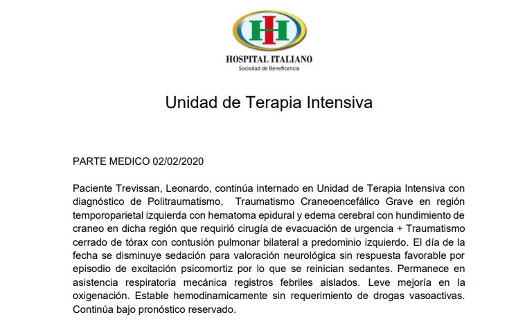 Trevissán cumple 15 días internado: su estado de salud no mejora