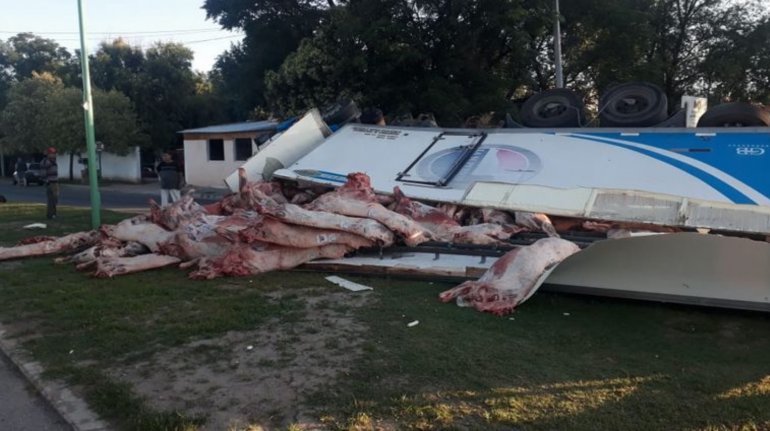 Un camión que transportaba 12 toneladas de carne volcó este lunes por la mañana en el ingreso sur a la localidad de Mina Clavero, en Traslasierra, Córdoba.