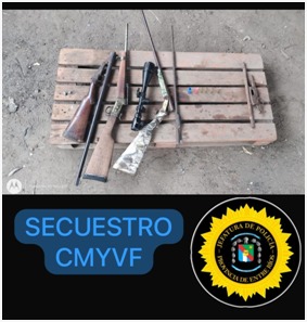 En la fecha y por orden del Juzgado en feria y en relación a una causa por Violencia de Género, personal de Comisaría de Minoridad y Violencia Familiar, diligencio dos oficios judiciales consistentes en allanamiento y registro domiciliario el primero de ellos en una vivienda situada en zona sur de la ciudad y otro en calle Simón Bolívar, como resultados de los mismos se secuestraron una (01) escopeta calibre .12, un (01) fusil calibre 30-30, dos (02) cañones sin marca visible, un (01) mecanismo de disparo, una mira telescópica, más de veinte vainas servidas y cartuchos sin percutar de diferentes marcas y calibres.-