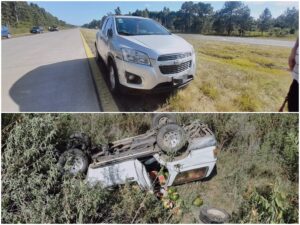 Por causas que se tratan de establecer, una camioneta Toyota, que circulaba en sentido norte–sur por el carril oeste, colisionó en su lateral izquierdo con una Chevrolet Tracker que transitaba en el mismo sentido. Como consecuencia del impacto, la camioneta perdió el control y terminó volcando.