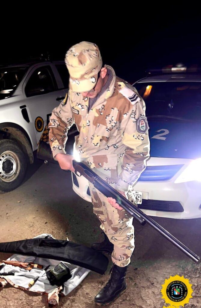 Pasadas las 00:20 horas, se procede a la identificación de tres personas mayores de edad que circulaban en dos motocicletas, oriundos de las ciudades de Villaguay y Concepción del Uruguay. Durante el procedimiento, los efectivos constatan que uno de los individuos transportaba un arma de fuego tipo escopeta.