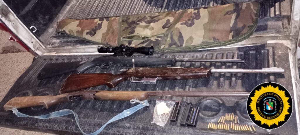 Brigada de Prevención Delitos Rurales Villaguay secuestro armas y dos carpincho en estación el Lucero.