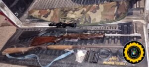 Como consecuencia, se procedió al secuestro de las armas, entre ellas una escopeta calibre 16, una carabina calibre .22 largo y otra carabina .22 con mira telescópica, así como 60 cartuchos calibre .22.