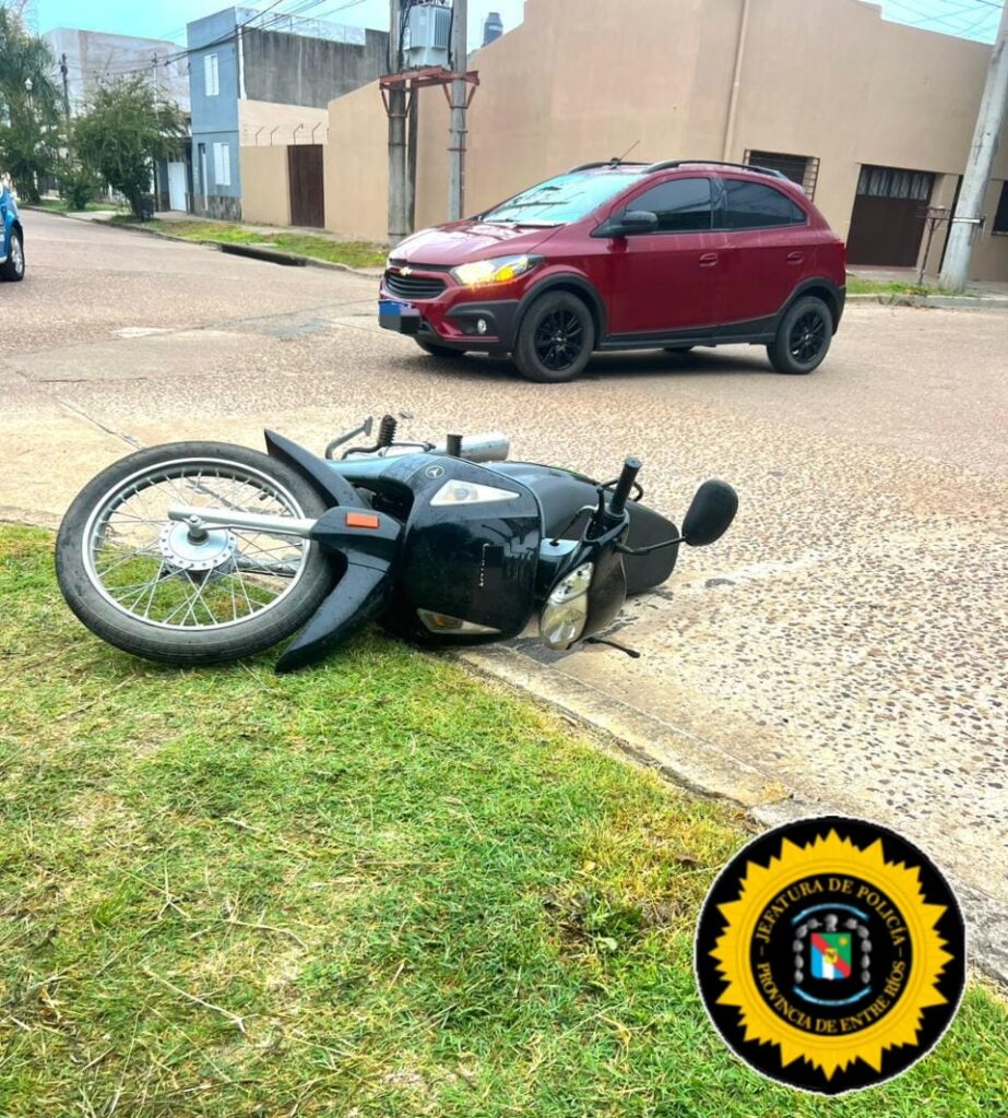 El siniestro fue protagonizado por una motocicleta 110 cc, en la cual se conducía una mujer de 36 años, acompañada por dos menores de 11 y 10 años de edad, quienes circulaban por calle Dorrego en sentido Este-Oeste; y un automóvil conducido por un hombre de 66 años, que transitaba por calle Castelli en sentido Sur-Norte.