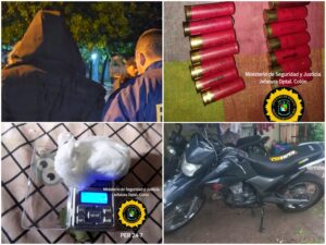 Como resultado de los procedimientos realizados en dos domicilios de la ciudad, se logró el secuestro de un Arma de Fuego tipo escopeta, calibre 16, con un cartucho percutado en su cañón; una cantidad importante de cartuchería del mismo calibre, prendas de vestir utilizadas por los sospechados al momento de cometer el ilícito, como así también una Motocicleta marca ZANELLA ZR 240 cc., empleada para desplazarse en su accionar delictual. Asimismo, se localizó en una de las moradas allanadas sustancia estupefaciente, tales como Cocaína y Marihuana; Balanza de precisión, recortes y elementos asociados al comercio de estupefacientes.