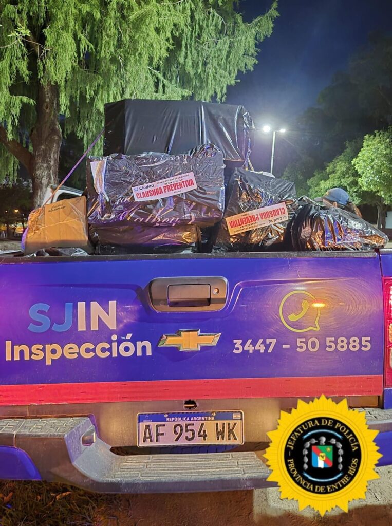 Ante esta situación, se dio intervención al personal de Inspección Municipal, quienes procedieron al decomiso de la carga por carecer de documentación, valor declarado y fecha actual de adquisición, tratándose de doce (12) bultos en total.