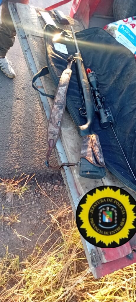 Ante la presunta infracción a la Ley Provincial de Caza Nº 4841, se dio intervención a personal de la Brigada de Prevención Delitos Rurales Villaguay, procediéndose al secuestro del arma de fuego y de una cabeza de ciervo Axis, quedando todo a disposición de la autoridad competente.