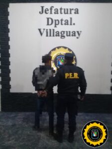 Motivo por lo que se procede a su inmediata aprehensión, bajo conocimiento de la Unidad Fiscal en turno, es trasladado hacia Jefatura Departamental Villaguay en calidad de detenido por el supuesto delito de “Desobediencia judicial en flagrancia”.-