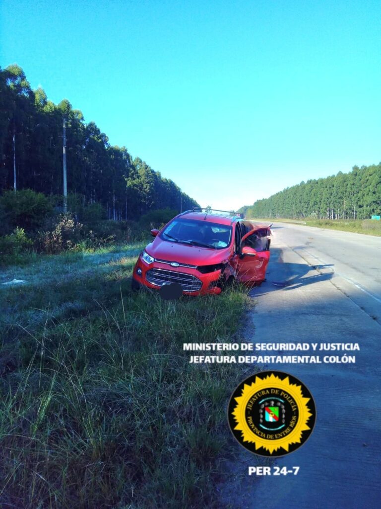 Minutos antes de las 10:00 horas, personal policial de Comisaría Ubajay dependiente de Jefatura Departamental Colón, tomó intervención en un accidente de tránsito sucedido en la Autovía Gervasio Artigas al km 202, lugar donde una Camioneta Ford, modelo Ecosport Titanium, conducida por un masculino de 68 años de edad, acompañada por su esposa de 64 años de edad, ambos residentes en la localidad de Avellaneda, Provincia de Buenos Aires. al circular en sentido de Sur a Norte, habrían despistado y colisionado contra el guardarraíl del lateral Oeste al romperse y desprenderse el neumático delantero izquierdo del rodado.