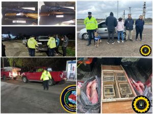26/07/2025 – Puesto de Control Vial Nogoyá: En la fecha, siendo las 11:30 hs. se desarrolla un operativo en conjunto con Personal de la División Drogas Peligrosas de la Jef. Dptal. Nagoyá, sobre Ruta Nacional 12 Km 344,5 carril de circulación hacia la Ciudad de Rosario del Tala, se logró detener una camioneta marca Toyota, modelo Hilux, conducida por un masculino mayor de edad, oriundo de la Ciudad de Luján – Buenos Aires. Una vez controlada la documentación y el dominio del vehículo, surge como novedad que el mismo transportaba en la caja del utilitario, una bolsa de nylon conteniendo en su interior 07 Liebres frenadas y una caja de madera en la cual transportaba varias jaulas tipo tramperas de aves, en las cuales tenían en su interior la cantidad de 08 aves de la especie Jilgueros. Ante esta novedad, se dio intervención al personal de la Dirección General de Prevención de Delitos Rurales – Brigada Nogoyá, a los fines de formalizar las Acta de Infracción a la Ley Provincial de Caza N° 4841, actuando sin el decomiso de las liebres y si con el secuestro de las aves mencionadas, para su posterior liberación.