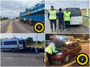 05/08/2025 – Puesto de Control Vial Túnel (Constatación de Garrapatas): En la fecha, se procedió al control de hacienda en los transportes: (01) Camión Iveco Stralis 490S44T, con semiremolque marca Hermann, cargado con 120 animales vacunos; (02) Camión Iveco Stralis 490S44T, con semirremolque marca Hermann, cargado con 120 animales vacunos; provenientes desde Curuzú Cuatiá, Provincia de Corrientes con destino la localidad de Montes de Oca, Prov. de Santa Fe. Controlado por personal de la Dirección General de Prevención de Delitos Rurales, se constata la presencia de garrapatas en los bovinos. Seguidamente se le da intervención a personal de SENASA y FUCOFA de Paraná, quienes una vez presentaron a toman muestras de garrapatas en el ganado transportado, se labra acta de constatación por complicada Dec. Reg. 7623/54 de Ley N° 12566 – Resoluciones SENASA 382/17 y 684 E/17 y se dispone el regreso al lugar de origen de los transportes y animales.