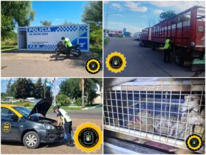 30/03/2025 – Puesto de Control Vial Nogoyá (Procedimiento por Ley Provincial de Caza N° 4841): Estando el personal realizando control en ruta, controlan una Pick Up marca Chevrolet, modelo S-10, en la cual se conducía un masculino mayor de edad, domiciliado en la provincia de Santa Fe, constatando que transportaba en el interior del rodado (caja de carga) 04 canes raza Galgo y algunas piezas derivadas de la actividad de caza furtiva sin ningún tipo de autorización. Seguidamente se dio intervención al personal de la DGDPDR Brigada Nogoyá, quienes efectuaron actuaciones correspondientes por Infracción a Ley Provincial de Caza N° 4841.