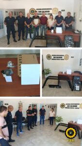 En el día de la fecha, el Sr. Jefe de Policía Departamental San Salvador, Crío. Mayor Leonardo Morales, recibió por parte del Presidente Municipal de la ciudad de General Campos, Sr. Javier Mendelovich, equipamiento destinado a la seguridad del móvil policial perteneciente a la comisaría con jurisdicción en dicha localidad.
