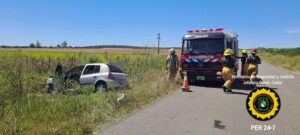 Alrededor de las 11:00 horas del dia 02/02, personal policial de Comisaría Ubajay dependiente de Jefatura Departamental Colón, intervino en un accidente de tránsito registrado en Ruta Provincial Nº 38 al km 16 de dicha localidad, lugar donde un vehículo marca Renault, modelo Clio, que se trasladaba en dirección de Este a Oeste conducido un masculino mayor de edad, acompañado de su pareja de 36 años y dos hijas menores, todos residente de la localidad de San Salvador, por razones que se tratan de establecer habría perdido el control del rodado, cruzándose de carril, impactando en un zanjón y volcando.