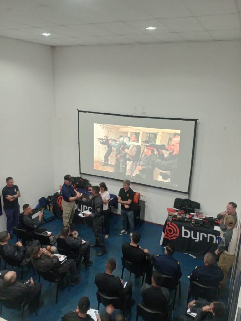 En esta oportunidad, instructores pertenecientes a distintos Grupos Especiales de la Jefaturas Departamentales e Institutos de Formación participaron de un entrenamiento especializado en el uso del arma no letal Byrna.