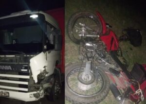 Según informaron desde el Puesto de Control Vial Diamante, el choque involucró a un camión marca Scania modelo P94DB y una motocicleta Honda XR 125 cc, conducida por un hombre mayor de edad.