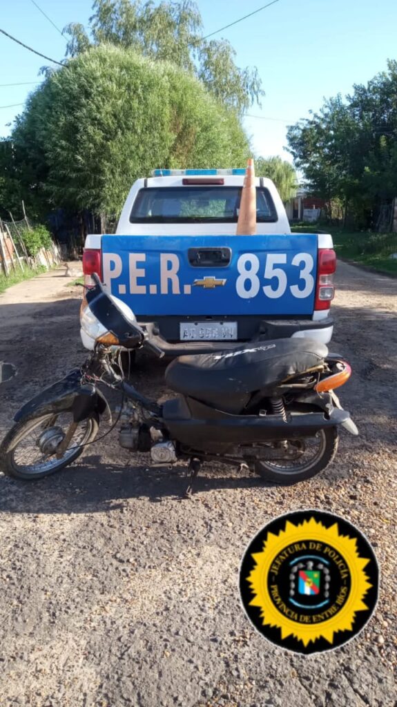 A raíz de lo comunicado, se hace presente personal de Comisaria Segunda quienes proceden al secuestro preventivo del rodado, quedando alojado en la dependencia policial a resguardo como primera instancia; luego personal de la División Investigaciones e Inteligencia Criminal, pudo establecer que el rodado había sido sustraído habiendo localizado al propietario quien radicó la correspondiente denuncia por el supuesto robo de su motovehículo siendo de marca Motomel modelo Blitz 110cc con dominio colocado.