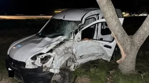 El accidente fue protagonizado por una Renault Kangoo, que terminó impactando de manera frontal contra un árbol situado al margen de la calzada. Dentro del vehículo viajaban tres personas, entre ellas, un menor de edad, informaron fuentes oficiales a FM Estación Plus.