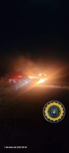 Aproximadamente a las 21:00 horas, de la víspera personal policial dependiente de esta Jefatura Departamental San Salvador se hizo presente en Ruta 18 km 212 por incendio de rollos de pasturas ubicados en un campo de un vecino de esta localidad.