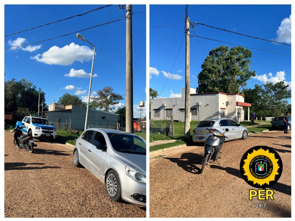 Constituido personal policial en el lugar, se constató la colisión entre un automóvil que se encontraba estacionado y un motovehículo.