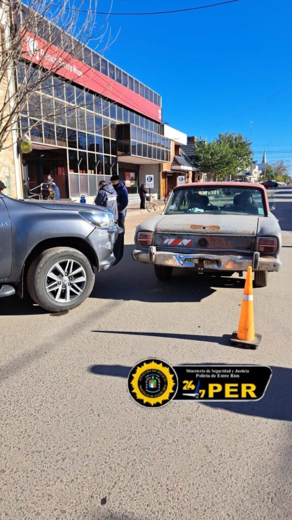 En horas de la mañana, por Calle San Martin, entre 3 de Febrero y 25 de Mayo, se produce un siniestro vial, entre un automóvil Ford Falcon, el cual se dirigía por la primera vía mencionada y por causas que se tratan de establecer seria colisionado por una camioneta Toyota Hilux, la cual estaba saliendo del estacionamiento a 45°. Ninguna persona resultó lesionada, solo daños materiales , interviniendo tránsito municipal.-