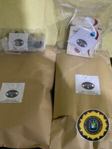 En primera instancia se desarrolló la requisa personal, a la altura Km 218 1/2, acceso a Gral. Campos Dpto. San Salvador. Donde se detuvo una pareja siendo una mujer de 34 años que descendió de un colectivo de larga distancia y un hombre de 33 años de edad que había llegado al lugar en bicicleta *Al realizar el palpado se localizo entre sus prendas de vestir y pertenencias dos (02) envoltorios de nylon con marihuana y dos (02) envoltorios de nylon con cocaína; la suma de $ 2.650 en efectivo y un teléfono celular. Culminado y anoticiado el fiscal, ordeno el secuestro de esos elementos mencionado como asi también la bicicleta rodado 26 en la que circulaban, y la inmediata detención de la mujer, quien tenia en su poder los estupefacientes, su traslado a sede policial imputada por la Supuesta Infracción a la Ley Provincial N° 10.566 (Narcomenudeo), y que el masculino quede supeditado a la causa*.