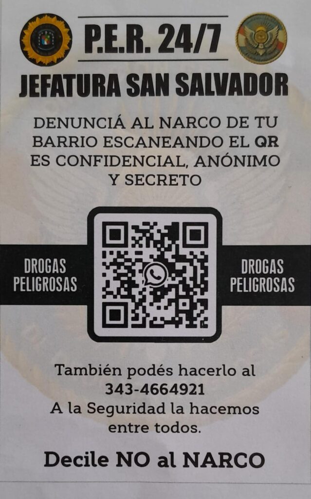 La División Drogas Peligrosas, de esta Jefatura de Policía Departamental San Salvador, implementó la utilización de calcomanías con código QR, para que los ciudadanos tengan la oportunidad de realizar las denuncias en forma anónima, confidenciales y secretas (preservando sus datos personales), las cuales fueron ubicadas en diferentes puntos de las ciudades que conforman este departamento, en instituciones, comercios y lugares de interés, a la vista del público.-