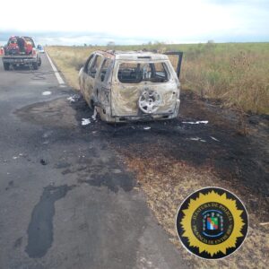 Siendo las 17:00 hs de la fecha a raíz de un llamado telefónico, personal policial se hizo presente en Ruta 18, km 228, lugar donde se estaba incendiando un automóvil marca Ford, modelo Eco sport, el cual era conducido por una persona mayor de edad. En el lugar trabajo personal de Bomberos Voluntarios de Gral. Campos. No hubo personas lesionadas, solo daños materiales.-