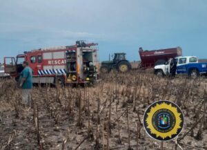 Siendo las 18:04 horas, personal policial dependiente de esta Jefatura Departamental San Salvador se hizo presente en Ruta 38 km 7, en un Establecimiento Rural, lugar donde se había originado un foco ígneo en una cosechadora. Pero su propietario lo pudo extinguir con sus propios matafuegos, de igual se hizo presente personal de Bomberos Voluntarios de San Salvador. En cuanto los daños fueron mínimos y no hubo personas lesionadas.