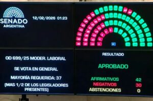 El Senado de la Nación aprobó con 42 votos a favor y 30 en contra el proyecto de Modernización Laboral, más conocido Reforma Laboral. La votación en general ocurrió a las 1.22 de este jueves, luego de 14 horas de debate con más de 40 oradores, y a continuación se inició el tratamiento en particular de las modificaciones.