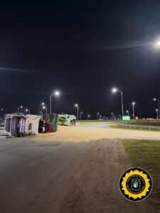 En el lugar se constató el vuelco de un camión marca Volvo, perteneciente a la empresa de transporte Ram Ram, que trasladaba un semirremolque cargado con harina de soja. El rodado quedó recostado sobre su lateral izquierdo, generando la obstrucción parcial de la arteria en sentido Villaguay – Ruta Nacional Nº 18.
