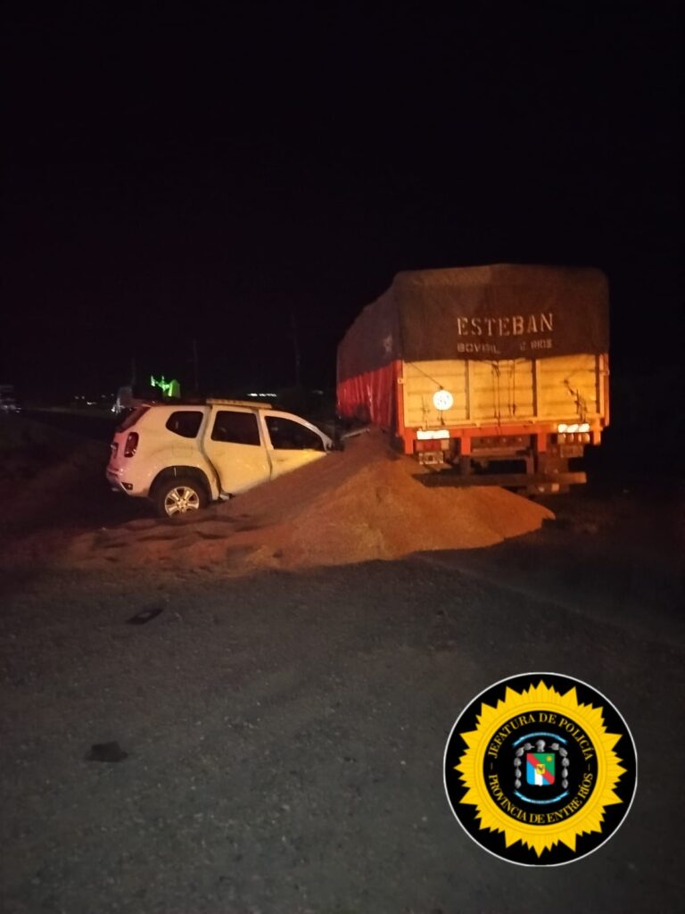 Al constituirse en el lugar, los efectivos constataron la colisión entre una camioneta Renault Duster que circulaba en sentido Oeste–Este y un camión Mercedes Benz con acoplado cargado con trigo, cuyo conductor habría ingresado a la ruta desde una planta cerealera ubicada sobre la calzada Sur con dirección hacia la ciudad de Paraná.