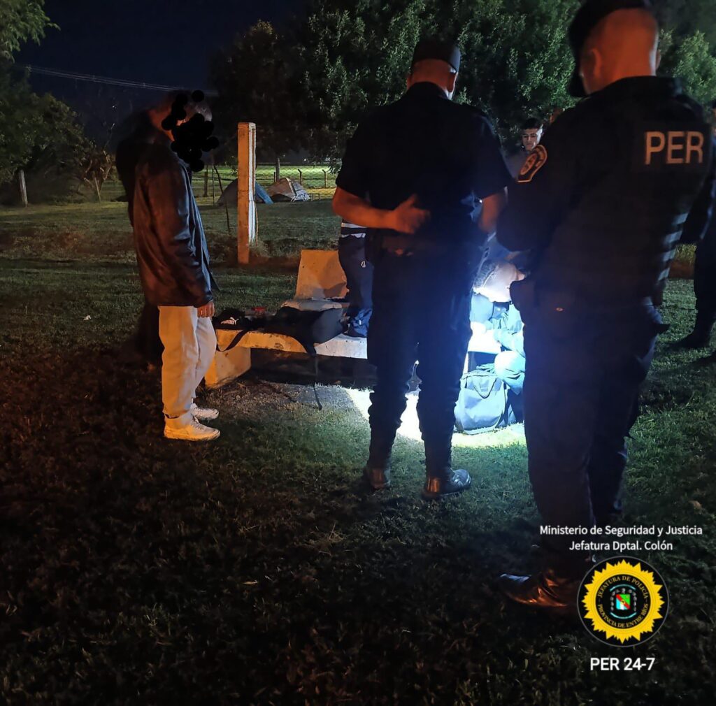 En la madrugada de la fecha, personal policial de Comisaría Villa Elisa, dependiente de Jefatura Departamental Colón, quienes se encontraban de recorrida preventiva en inmediaciones de Av. Urquiza y Bv. Churruarin de dicha ciudad, observaron la presencia de tres masculinos en actitud sospechosa que se encontraban en el paseo al costado del natatorio municipal, lo cual les llamó la atención y procedieron a su identificación, resultando ser tres jóvenes mayores de edad, residentes de esa misma localidad, a quienes tras solicitarle que exhibieran lo que contenían en sus mochilas, se logró apreciar a primera vista unos frascos conteniendo una sustancia vegetal que por sus características aparentaban ser flores de Cannabis Sativa.